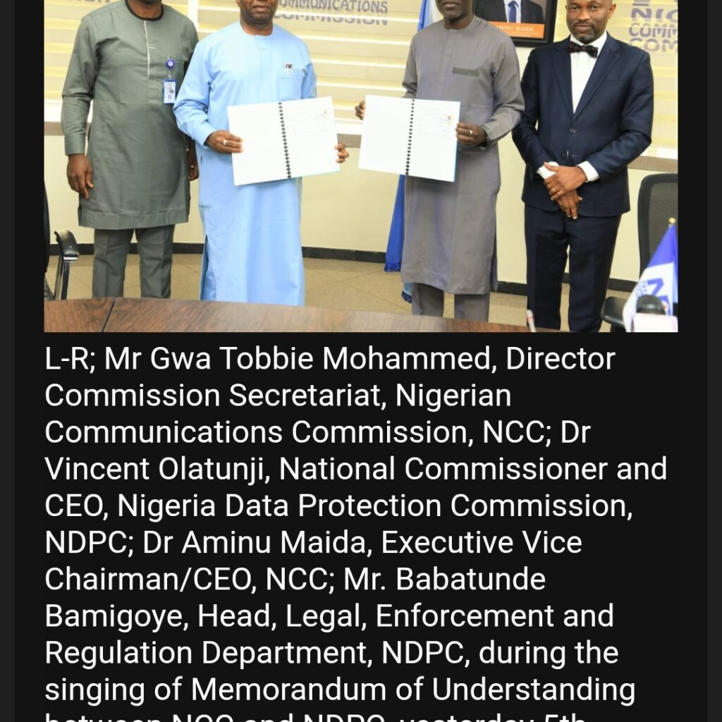 The Nigerian Communications Commission (NCC) and the Nigerian Data Protection Commission (NDPC) have signed a Memorandum of Understanding (MoU) aimed at strengthening data privacy enforcement and regulatory coordination within Nigeria’s telecommunications sector.